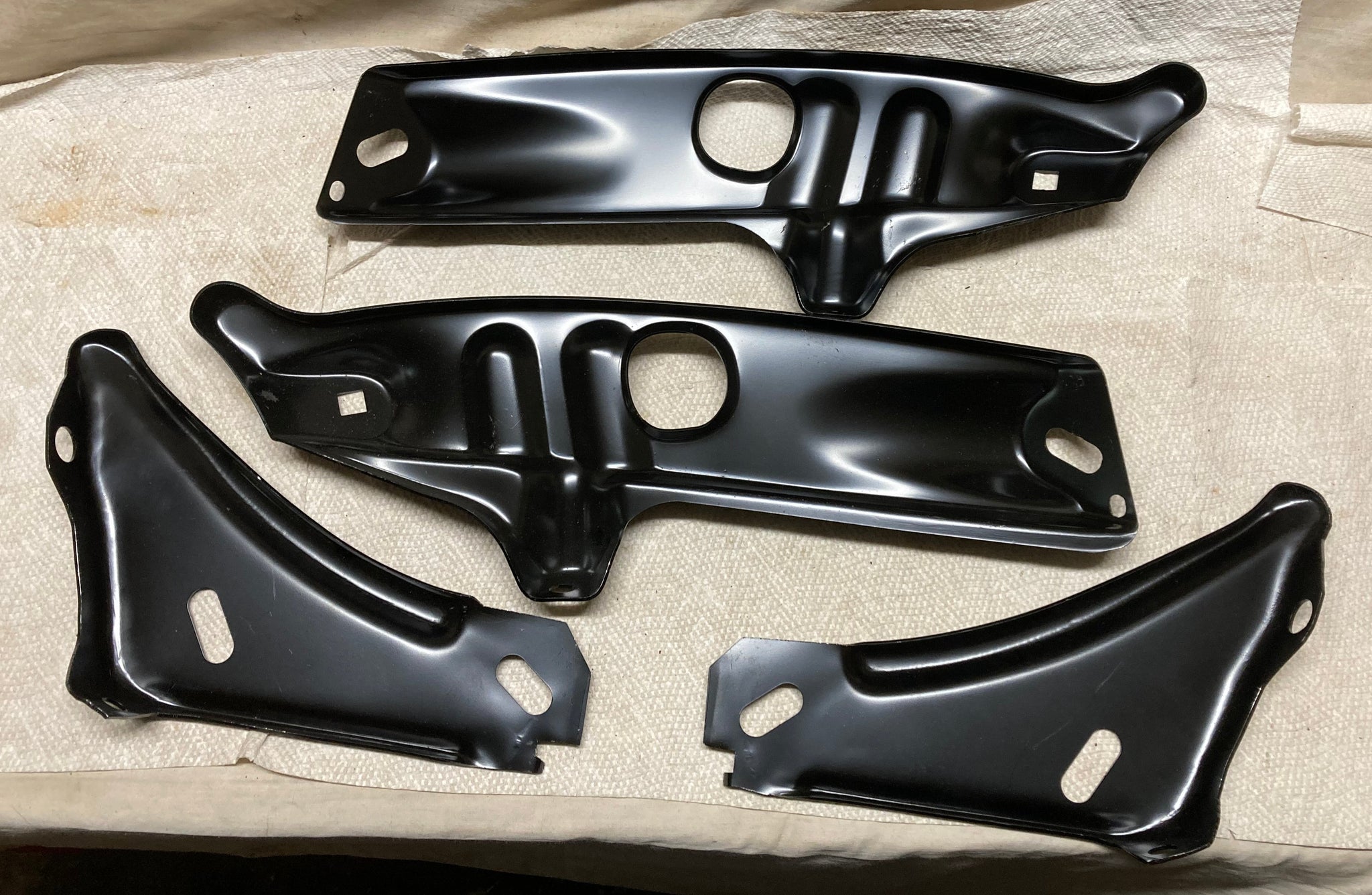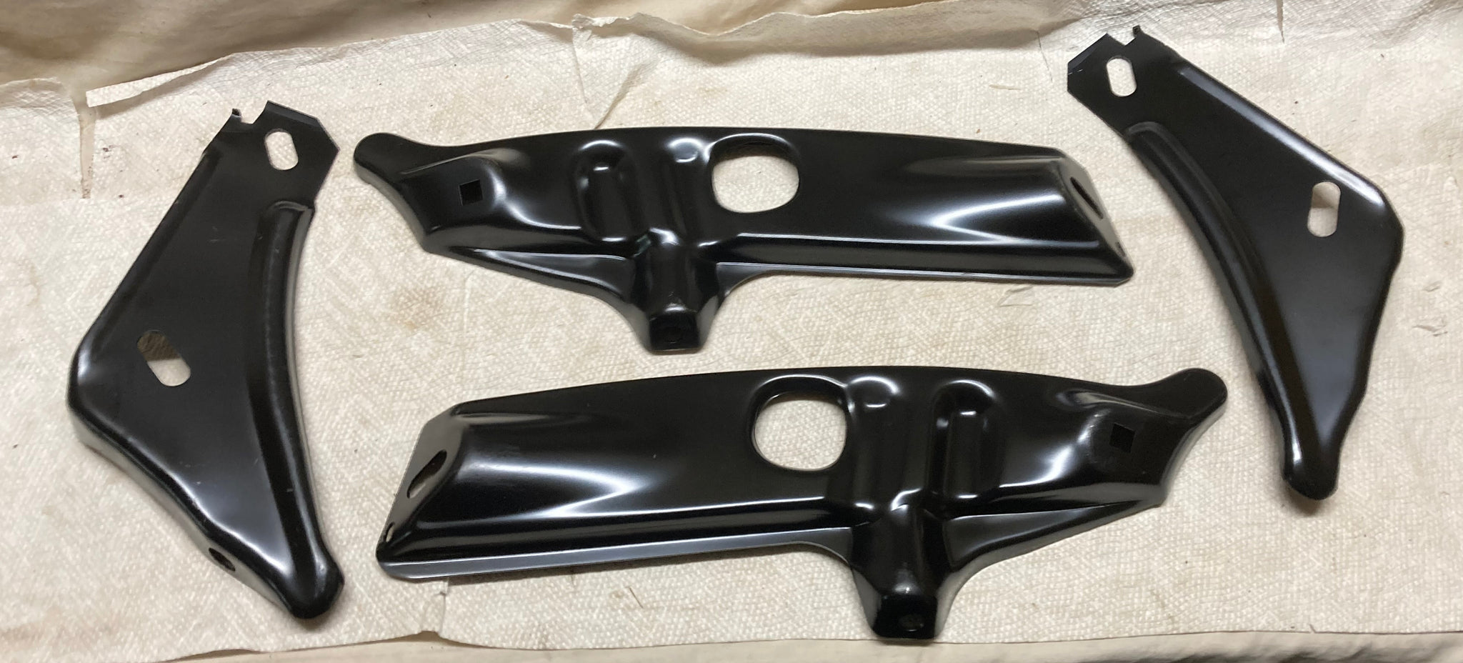 This is a reproduction set, 4 Pieces, of Front Bumper Brackets for 1968 thru 1972 Nova, and Nova SS.