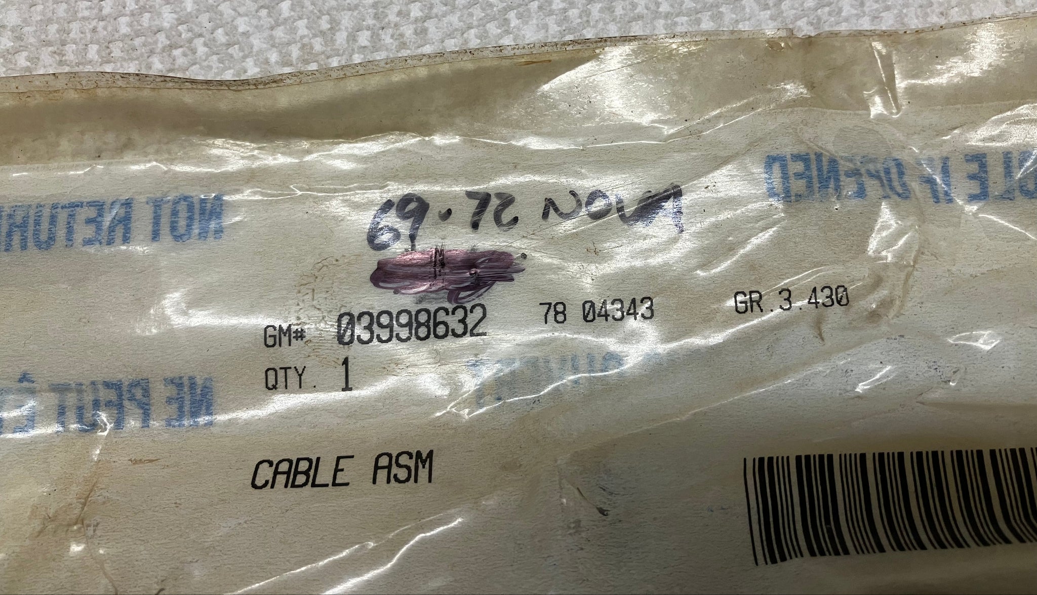 This is an NOS Accelerator Cable for 1970 thru 1972 Nova and Nova SS with 4 Barrell Carburetor. Note: The grommet for the throttle cable bracket is round. See Pictures
