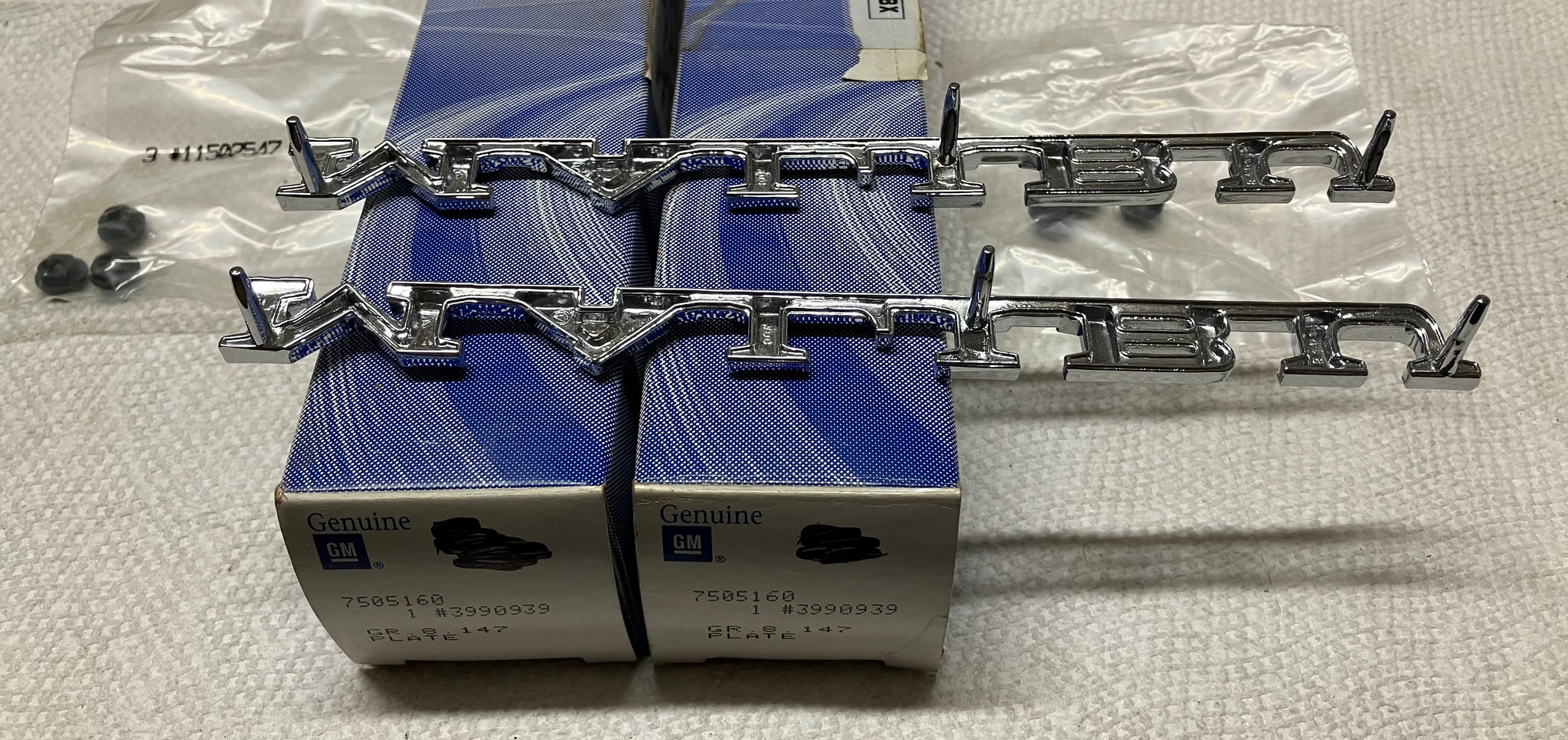 This is a Pair of NOS Fender Emblems # 3990939 for 1971 and 1972 Malibu's excluding SS. These are New Old Stock Emblems. See Pictures