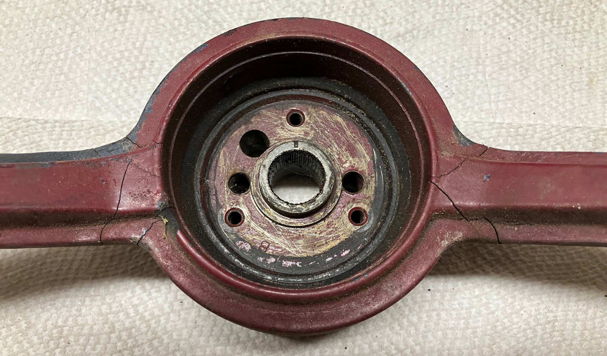 This is an Original GM Steering Wheel and Horn Bar for 1964 Chevelle, Chevelle SS, Malibu, El Camino, and El Camino SS. There is pitting on the chrome and the steering wheel is cracked. See Pictures
